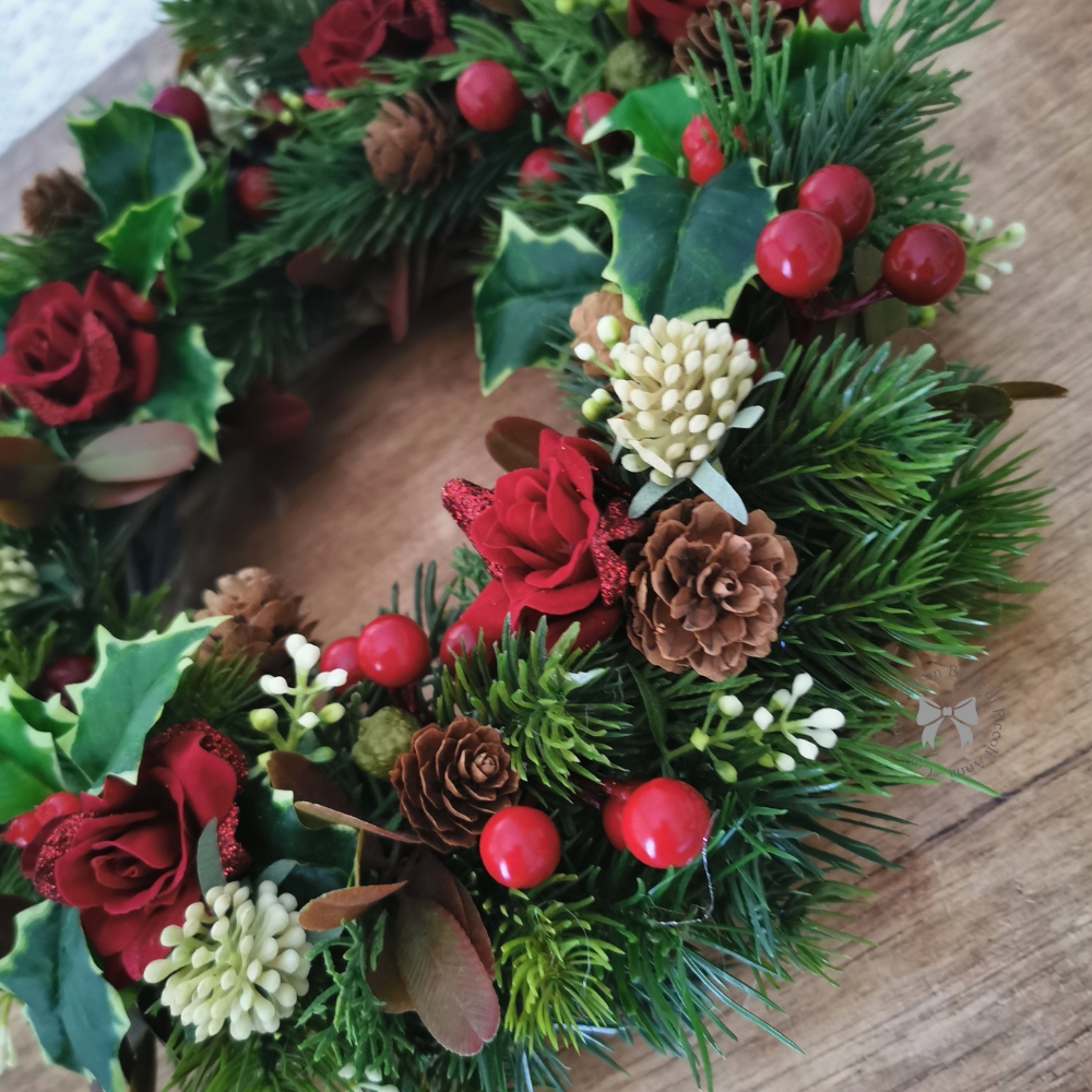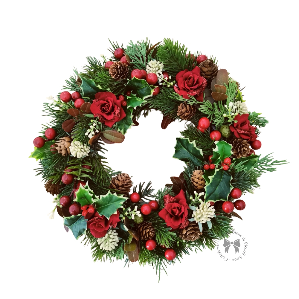 Handmade - Ghirlande Fuoriporta - Ghirlanda Rose Rosse e Agrifoglio