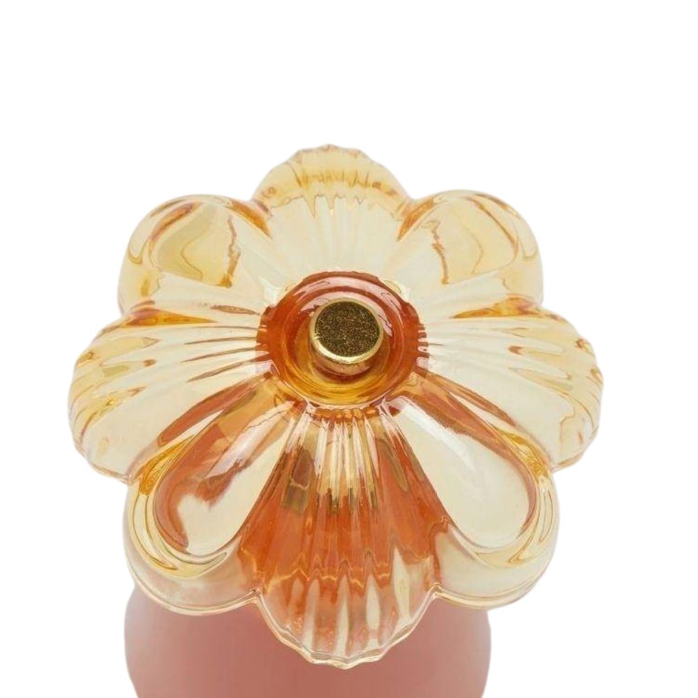 Romantica lampada decorativa dal colore delicato e moderno. In cima un paralume in vetro a forma di fiore.
