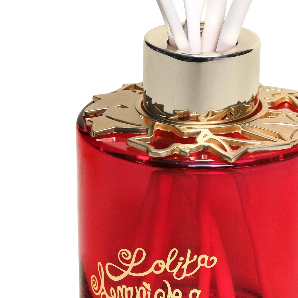 Vestito di un rosso intenso, con un anello decorato con foglie di edera e accompagnato da un gioiello abbinato sugli steli di salice, questo diffusore cattura lo sguardo con il suo look audace e festoso.