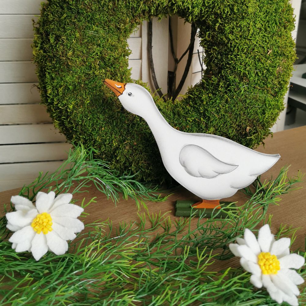 Pasqua e Primavera - Oca di Legno Piccola Dipinta a Mano